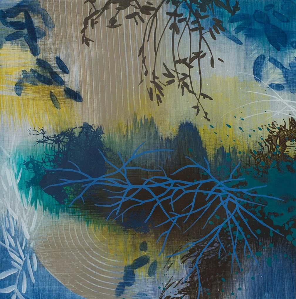 Trailing Branches, Acrylic on paper, framed 20 x 20 x 3/4”