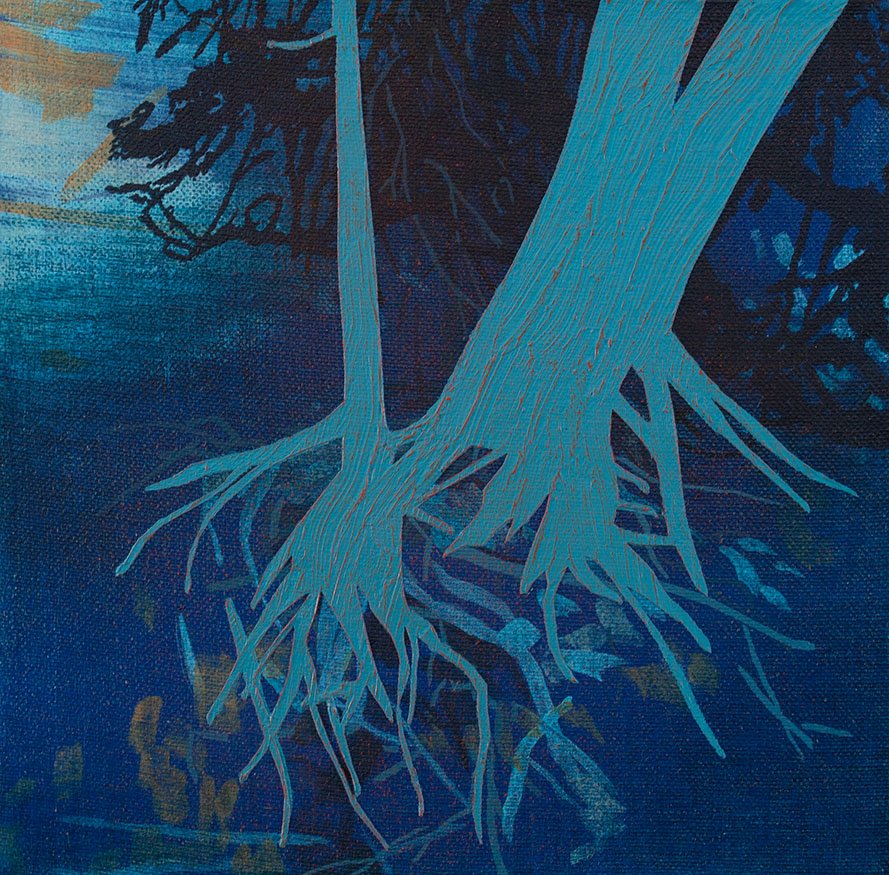 Night Forest 1, Acrylic on canvas 7 x 7 x 1-1/2”