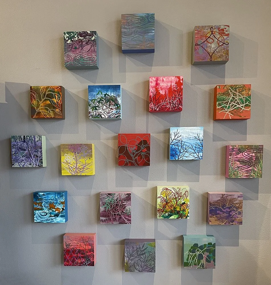 Habitat Series, Acrylic on panel, 4 x 4 x 1.5", These pieces are available individually at retail art spaces in the Cleveland area.